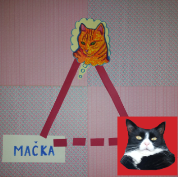 A prečo je dolná priamka na trojuholníku prerušovaná? Slovo mačka samo o sebe neznamená, že sa vedľa vás ako zázrakom zjaví reálna mačka. Nie je to zaklínadlo ani položka v inventári videohry. Slovo vo vašej mysli vyvolá len mentálny obraz mačky.